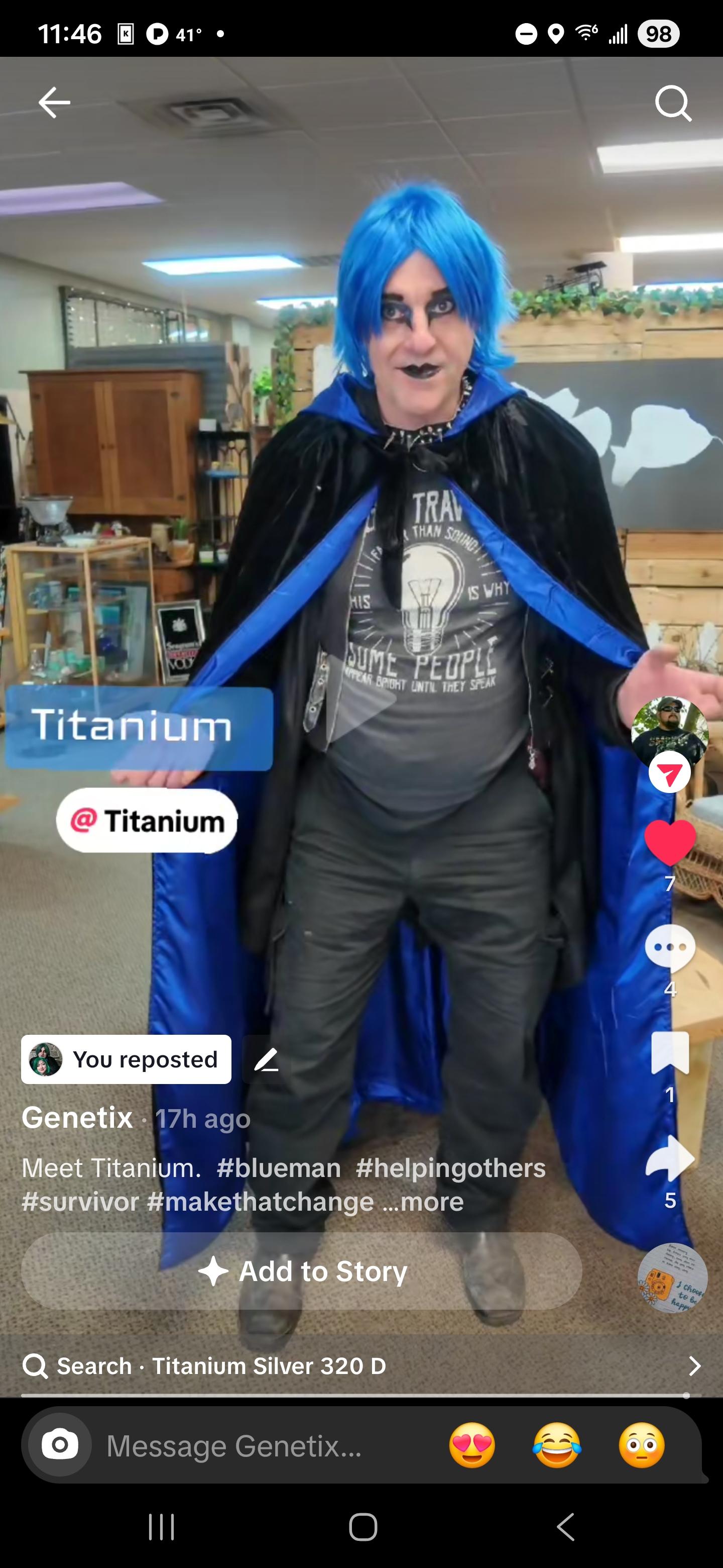 The gentleman who made the video of me. I'll just call him by his handle Genetix. He confronted me on the streets of Ontario, OR, as my wife was shopping for jewelry supplies in a small shop. I was in the middle ofa phone call and ended my phone call to see what this gentleman wanted to know about me. Genetix wanted to understand why the appearance and what my story was about. So, for those that have not heard the story of my cancer, here you go. Video form on TikTok. I have to say this gentleman done a super job of telling the story and the whole edit was awesome! Look up Genetix on TikTok to meet this wonderful person!