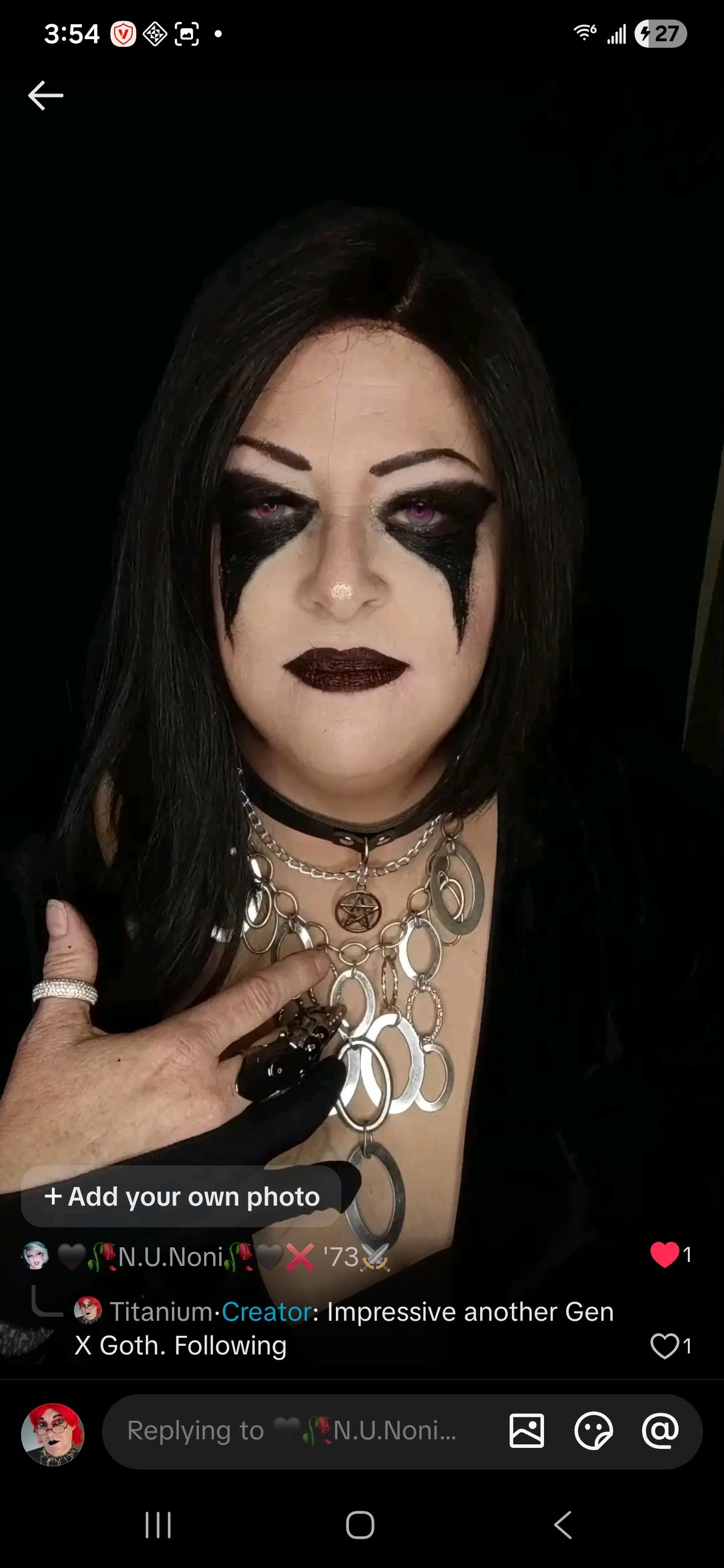 Still making friends all around the world with Goth/Emo/Alt makeup designs. Like my newest follower, I found out is Gen X as well, and that enjoys the same kind of makeup artistry. Say hello to N.U.Noni... (Header photo)