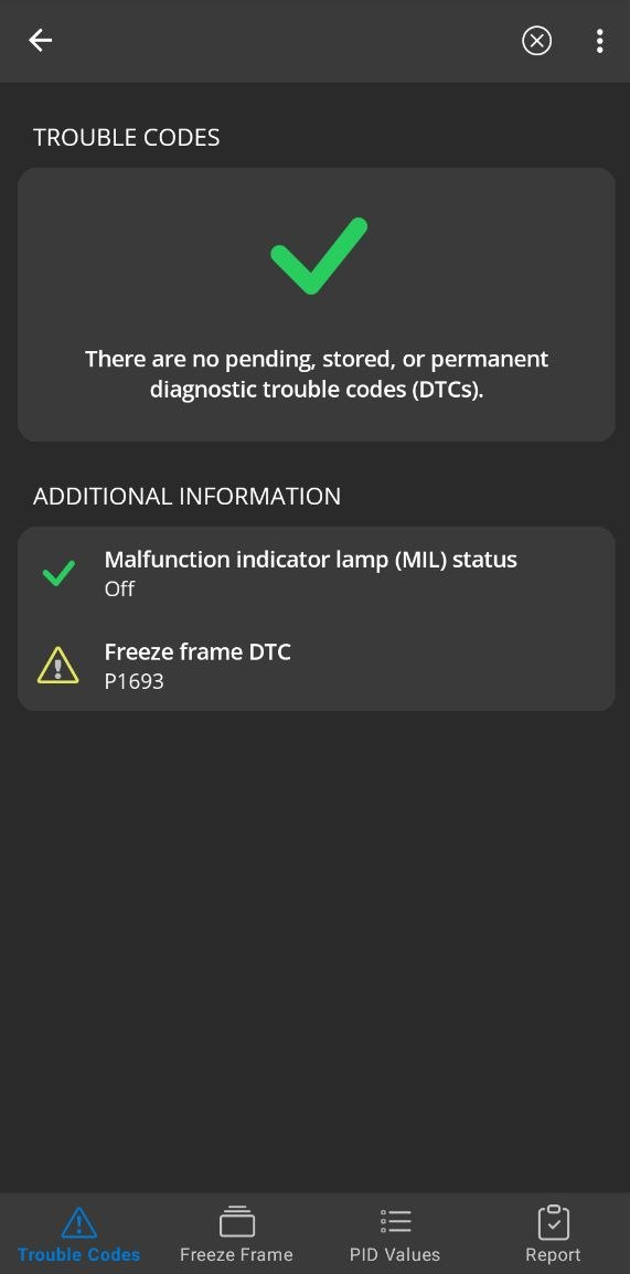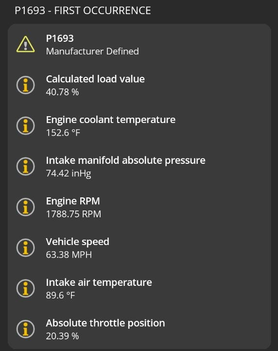 Used an OBDII tool and found code P1693. Used the key on/off procedure to read codes from the odometer screen: