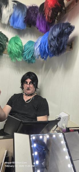 Cold day here, and Tweety Bird got me a warm fleece to wear around the computers. That particular day, I was enjoying the purple colors. The crazy part is I enjoy the wigs more in the wintertime since they keep my head warmer.