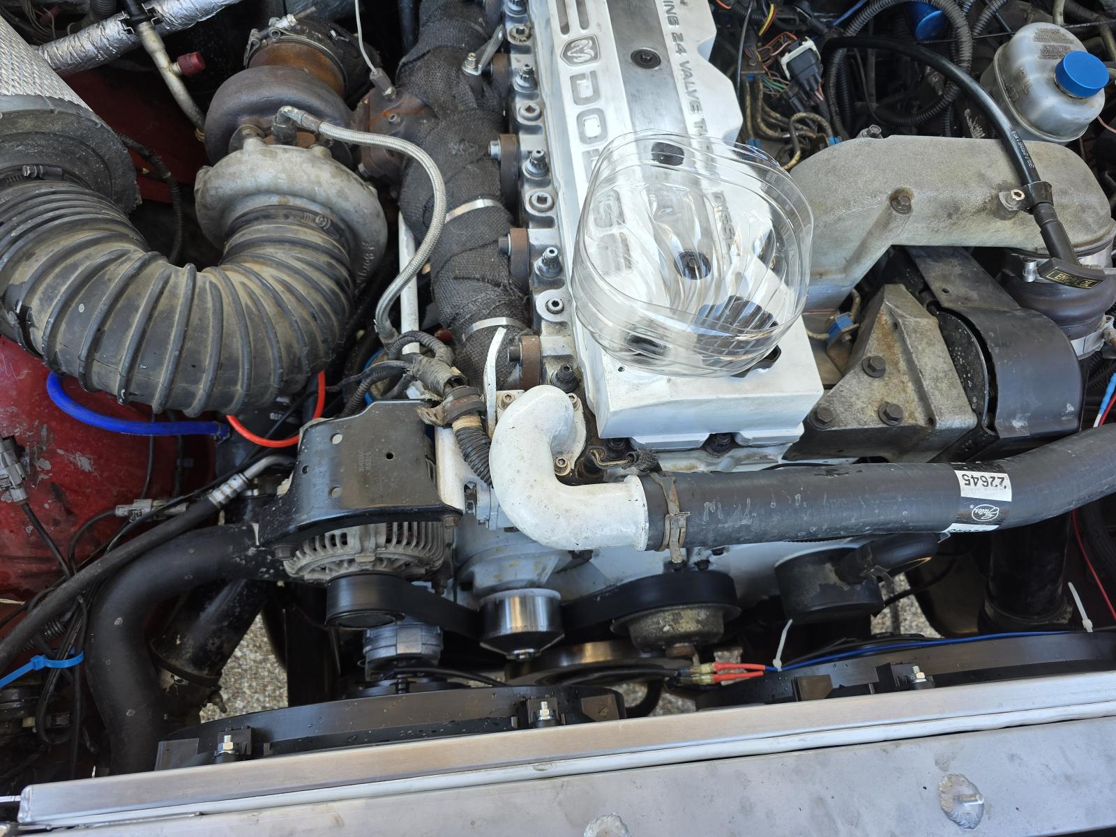 Running and driving now. Still breaking it in and finishing up small things ( finally got new upholstery for the seats ) once I get a few thousand miles on it I'll swap from air to air intercooler to air to water and try out the water methanol. I do have a dummy spool made up to attempt intercoolerless operation but I dont have high hopes for it to be honest. Also fun fact water jugs from heb make great funnels they even have the same threads as the oil cap